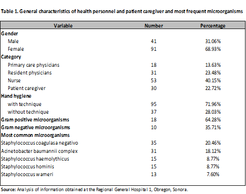 A chi-square test was performed to determine differences in the microbiota developed by healthcare personnel and patient caregivers. No differences in the development of microorganisms were observed with this method (p=0.10).