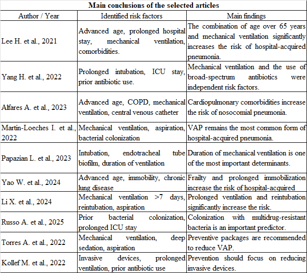 Objective: To conduct a literature review of recent scientific literature (2021–2026) available in PubMed and SciELO, to identify the main risk factors associated with the development of hospital-acquired pneumonia in hospitalized patients, particularly in intensive care units.